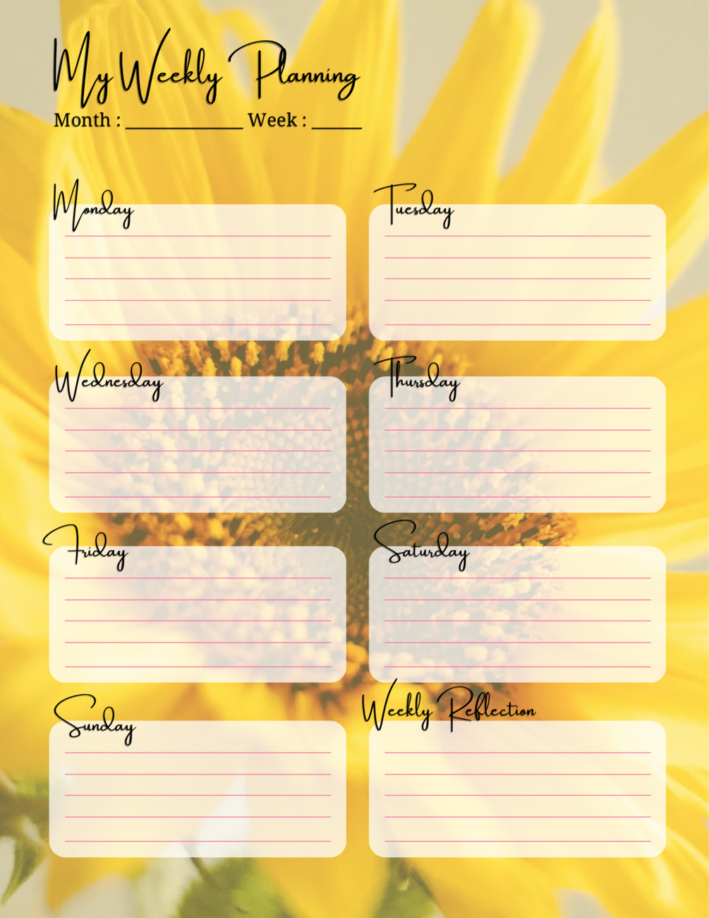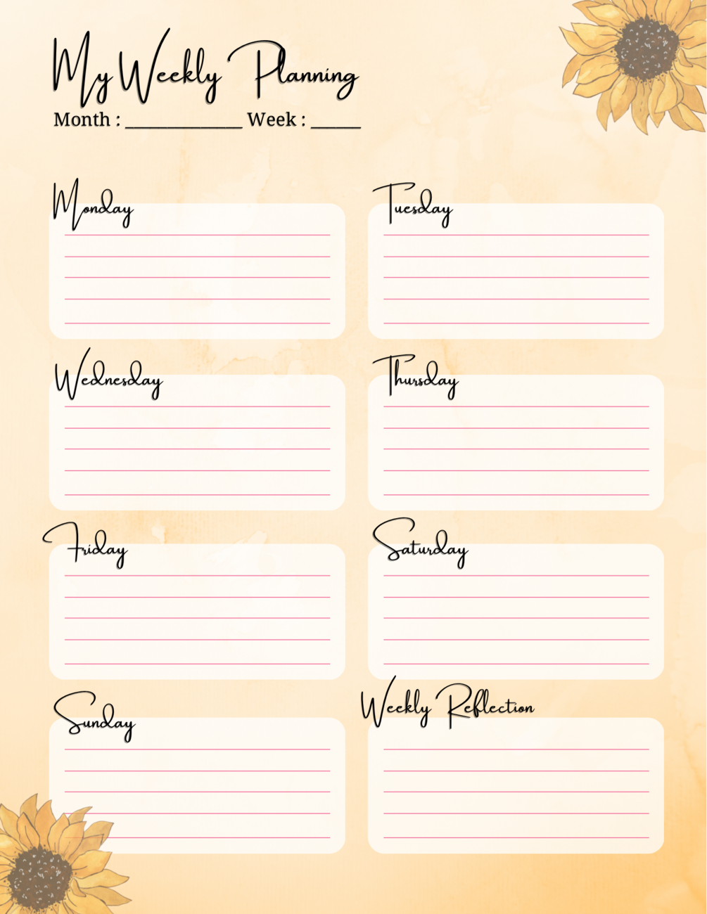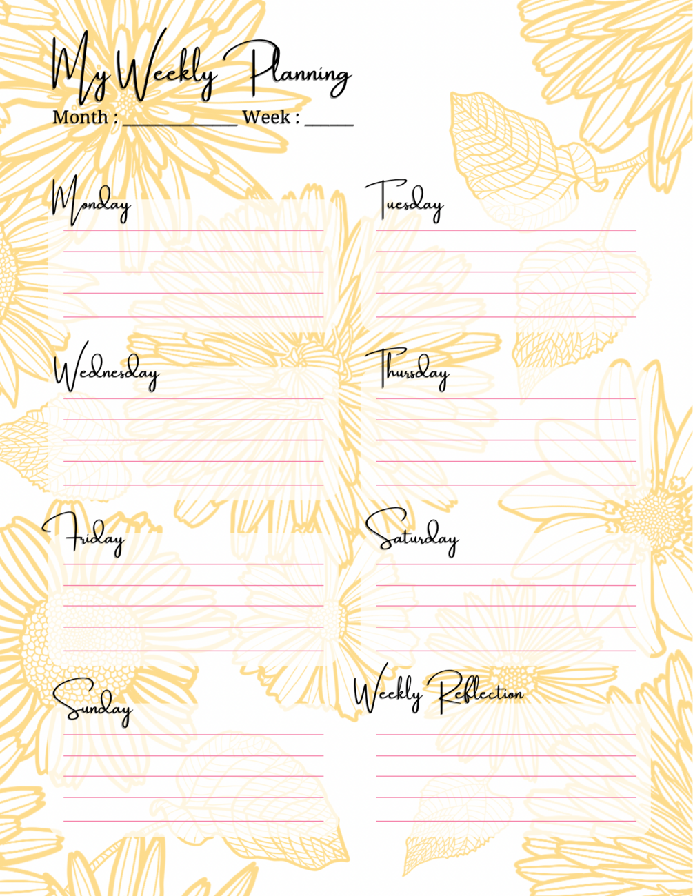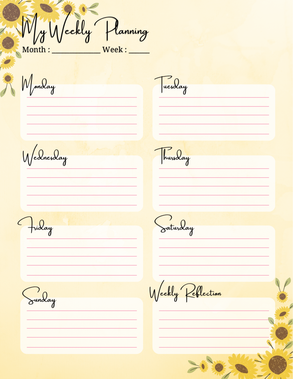 Undated Weekly Digital Planner Template Created For Every Week of the Year To Help You Document and Stay On Track of Your Weekly Goals